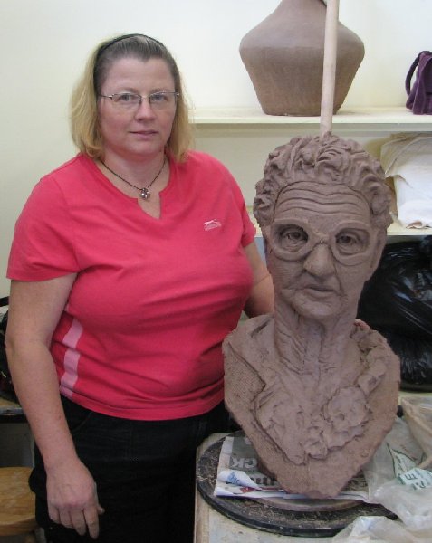 sculptural process covering the subject of modeling a portrait bust, including the process of hand building the carcass of a sculpture, proportioning the basic shape, modelling facial features, hair, clothing, positioning the sculpture into a posture that reflects its subject, and finally adding texture to the sculpture to bring it up to a beautiful finish.